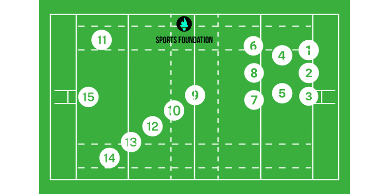 9–Scrum-Half 10–Fly-Half 11,14–Wing (Left and Right) 12,13–Center (Inside and Outside) 15–Fullback