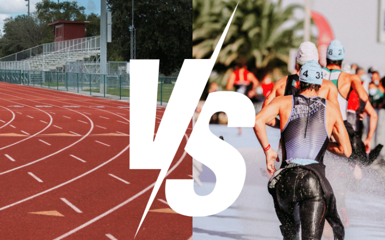 A track and field stadium is smaller in overall footprint compared to a standard triathlon course. A standard 400-meter track …
