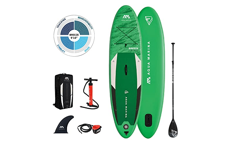 The Aqua Marina Breeze All-Around is a thoughtfully designed inflatable paddleboard that caters to both beginners and intermediates seeking reliability and fun on the water. At 9’10” in length and 30″ in width, this lightweight board offers a sweet spot for young paddlers to enjoy a float without the ungainly bulk of larger models. The 2023 revisions grant a slightly wider nose and tail, translating to increased stability, which is critical for maintaining confidence as children master their paddling skills.