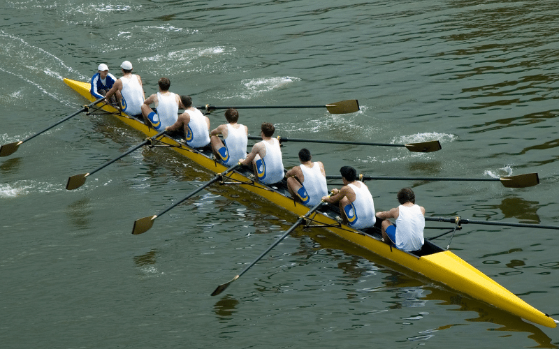 Here’s a recommended list of Rowing equipment for beginners: a basic rowing shell, one pair of oars, a personal flotation device, rowing gloves, and comfortable, close-fitting clothing. These will help ease the entry into the sport.