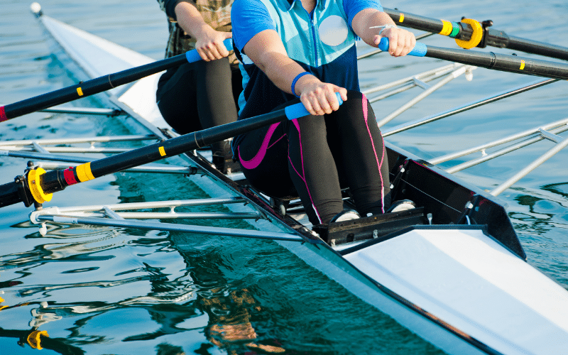 Here’s a recommended list of Rowing equipment for beginners: a basic rowing shell, one pair of oars, a personal flotation device, rowing gloves, and comfortable, close-fitting clothing. These will help ease the entry into the sport.