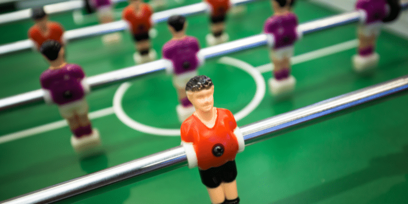 Table Football, also known as foosball, features miniature figures mounted on rotating bars to simulate a soccer game.